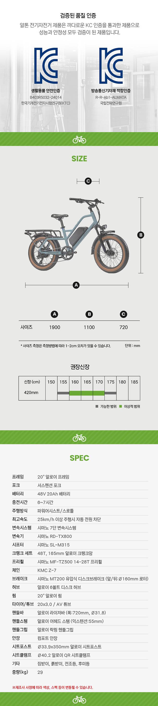 2025 알톤 알마타 FB 시마노 7단 500W 리어허브 광폭타이어 배달용 전기자전거
