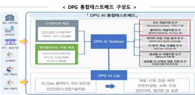 이번 사업을 통해 정부는 국민 누구나 혁신적인 아이디어가 있으면 하나의 서비스로 실현할 수 있게 DPG 통합테스트베드가 가진 민간 클라우드 자원과 각종 SW 개발 도구, AI 모델 생성·학습 도구, 데이터 분석 도구 등을 제공한다.