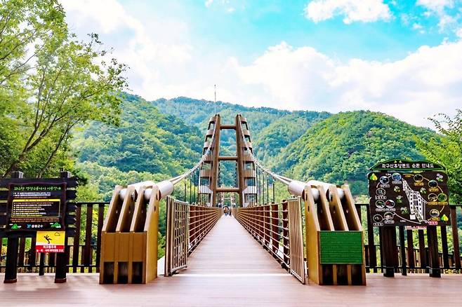 충청북도 증평군 증평읍 솟점말길 107에 위치한 ‘좌구산 명상구름다리’는 증평군을 대표하는 자연휴양형 관광자원으로, 좌구산 자연휴양림 내에 조성된 대형 출렁다리다.