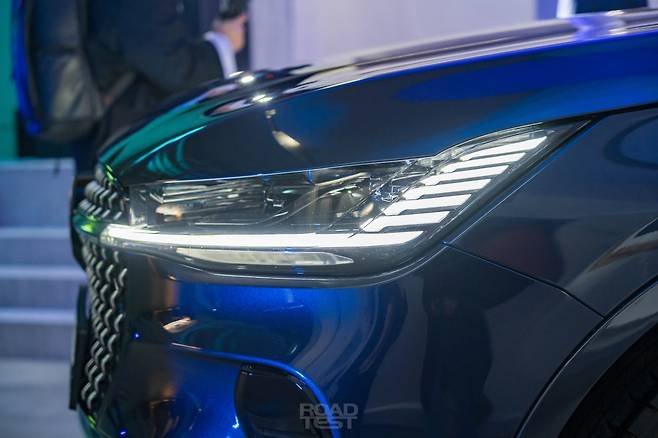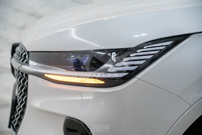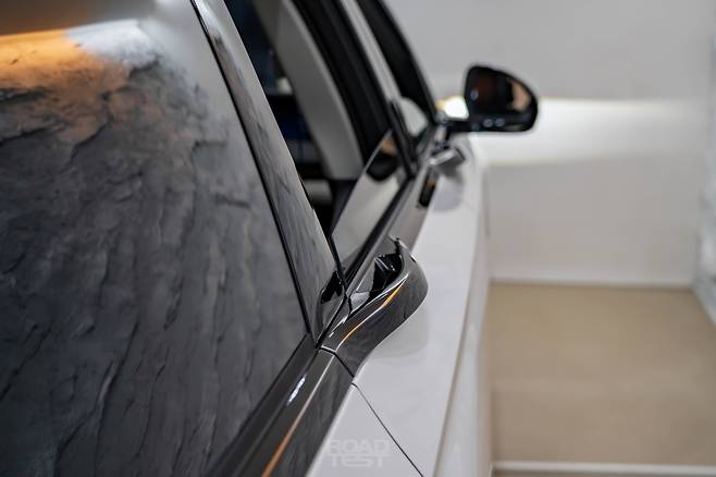 옆모습의 하이라이트는 벨트라인에 자리한 도어 핸들. 국내 미출시 모델인 제퍼 세단과 같은 방식으로, 창문과 도어패널 사이에 감쪽같이 숨었다. 덕분에 외부 패널 굴곡을 최소화해 단정하게 디자인할 수 있었다. 일곱 가지 컬러 모두 지붕과 필러를 블랙 유광 컬러로 칠했으며, 휠은 21인치 한 가지만 끼운다. 타이어는 255/50 사이즈 미쉐린 프라이머시 올 시즌.
