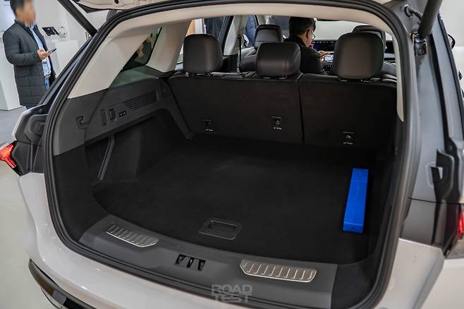 2열과 트렁크 공간도 노틸러스의 강점이다. 뒷좌석은 한층 여유로운 레그룸은 물론, 등받이 각도를 조절할 수 있는 시트를 적용해 편안하게 이동할 수 있다. 사륜구동 SUV임에도 불구하고 센터 터널도 굉장히 낮다. 트렁크 용량은 미국 SAE 기준 997L. VDA 수치는 알 수 없으나, 한눈에 봐도 용량이 아주 넉넉하다. 다만 바닥 패널 아래는 스페어타이어로 가득 차 추가 수납공간은 없다.