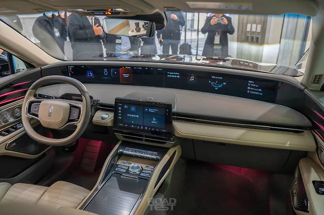 실내는 브랜드의 핵심 콘셉트 ‘고요한 비행(Quiet Flight)’을 반영한 디지털 공간으로 발전했다. 대시보드 전체를 가로지르는 ‘48인치 수평형 대형 디스플레이(Coast-to-Coast)’가 대표적이다. 도어트림 장식에서 자연스럽게 이어지며 탑승객을 감싸는 형태로, 계기판 정보를 포함한 수많은 정보를 띄운다. 그동안 콘셉트카에서나 볼 수 있었던 과감한 구성이다. 공조장치나 애플 카플레이 및 안드로이드 오토, 설정 등 주요 기능은 별도의 11.1인치 모니터에서 확인할 수 있다.