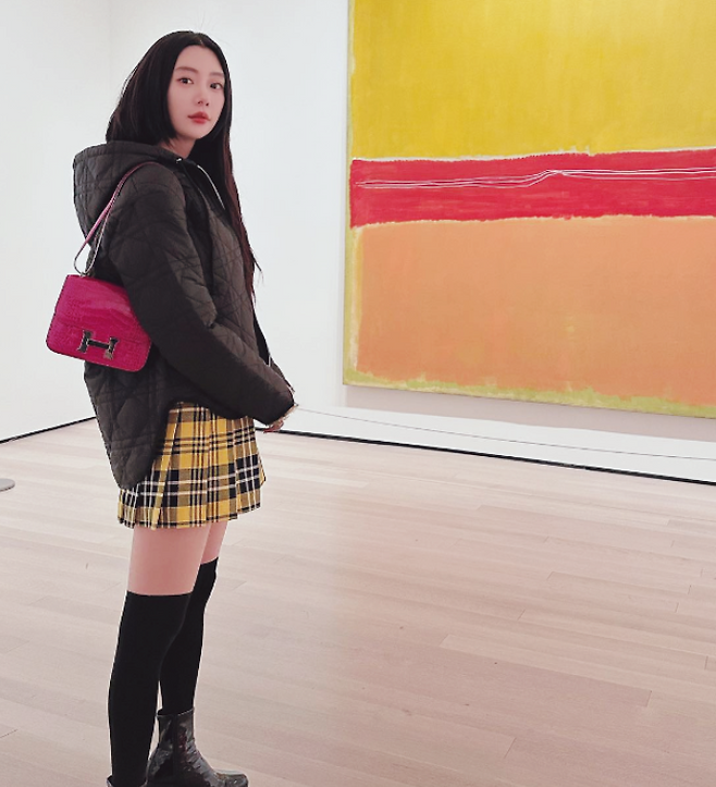 미녀 배우 클라라 님의 우아한 화이트 미니 원피스 패션을 준비해 봤어요~ 룩은 퀼팅 블랙 숏패딩과 노란색 체크 미니스커트 조합이 인상적인 스타일링이었어는데요. 여기에 화려한 핑크 컬러의 가방을 매치해 더욱 강렬한 포인트를 주었더라고요. 바로 시작해 볼게요!