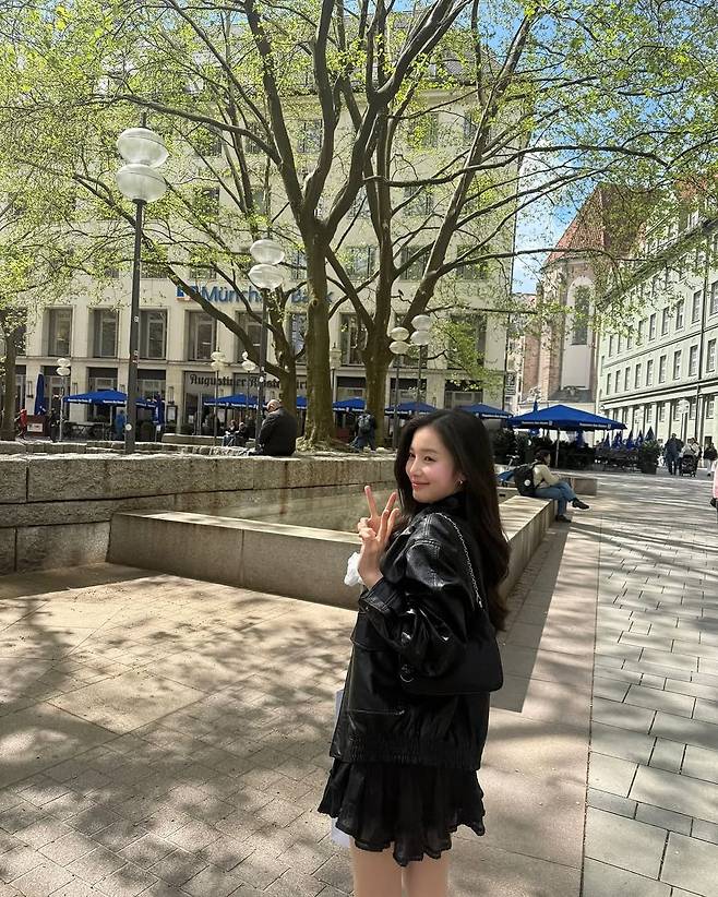 따사로운 햇살과 푸른 나무가 어우러진 도시 거리에서 윤채경이 선보인 데일리룩이 눈길을 끈다. 윤채경은 인스타그램을 통해 올블랙 코디를 공개하며 봄날에도 시크함을 잃지 않는 스타일 감각을 자랑했다. 가볍게 걸친 블랙 레더 재킷과 풍성한 러플이 돋보이는 시스루 미니 드레스 조합은 계절의 경쾌함과 세련된 무드를 동시에 연출했다.