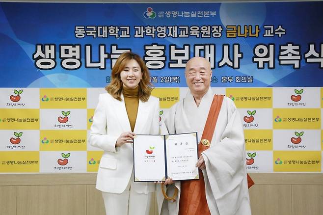 한편, 지난 11월 동국대학교 과학영재교욱원장으로 활동하고 있는 금나나 교수가 생명나눔실천본부 홍보대사에 위촉되었습니다.