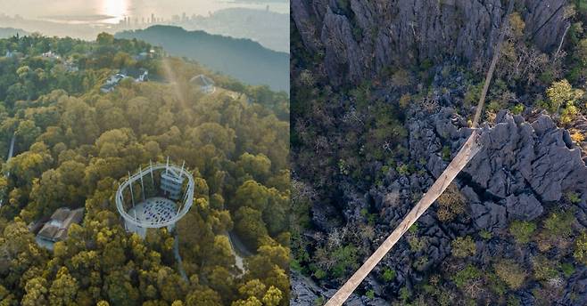 라오스 중부에 있는 푸파만전망대는 천혜의 자연 경관을 자랑하는 관광 명소입니다. 전망대를 가기 위해서는 약 2시간 가량 짚라인을 탄 뒤 공중다리를 건너 암벽을 오른 뒤 공중의 출렁다리를 건너야 하는데요.