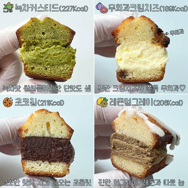 🍋레몬얼그레이(206Kcal): 휘낭시에에 레몬 시럽이 뿌려져 있고 크림은 얼그레이 맛이에요! 얼그레이 맛이 진하고 고급스럽고, 레몬도 새콤달콤하니 존재감이 강하지만 뭔가 섞이지 않는 느낌이었어요! 하지만 맛있는것+맛있는것 조합이라 먹고 나니 또 생각이 나더라구요?!