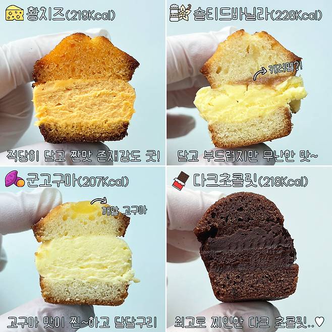 🍠군고구마(207Kcal): 크림에서 고구마 맛이 엄청 진하게 느껴지는 편! 진지한 고구마가 아니라 완전 달달구리 군고구마st에요! 휘낭시에 위에 고구마 무스가 한줄 그어져 있는 디테일이 있답니당.
