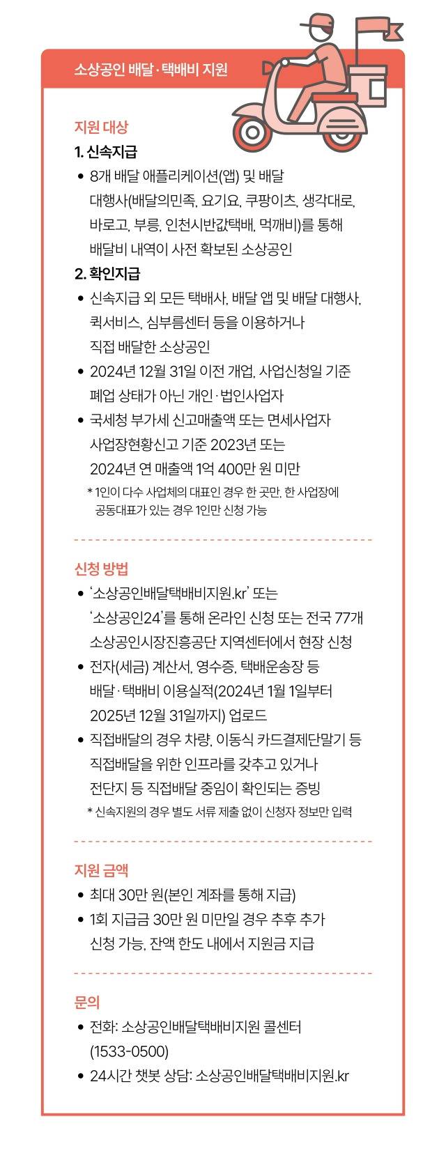 지원 대상은 신속지급 대상에 포함되지 않은 택배사나 배달 플랫폼 등을 이용한 소상공인이에요. 특히 사연자처럼 직접 상품을 고객에게 전달하거나 퀵서비스, 심부름센터 등을 이용한 경우에도 지원받을 수 있어요. 2023년 또는 2024년 매출액이 연 1억 400만 원 미만이면서 신청일 기준으로 폐업하지 않은 소상공인이라면 지원 대상이에요. 정부는 신속지급 대상 13만 명에 더해 약 55만 명의 소상공인이 새로 혜택을 받을 것으로 보고 있어요.