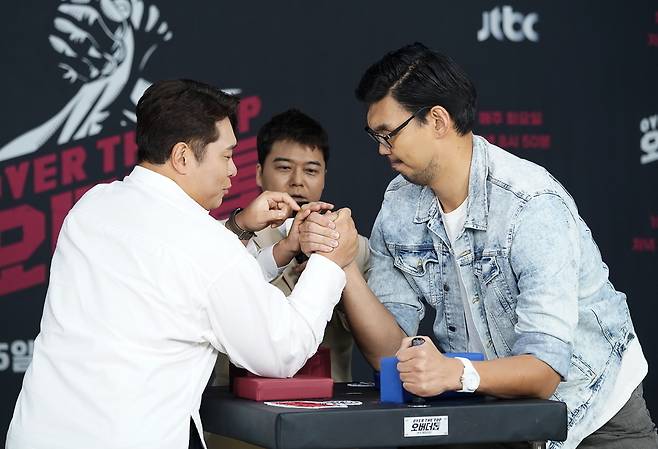 마지막으로 윤현준CP는 "프로그램이 나가고나면 팔씨름 대회가 많이 팔릴 것 같다. 팔씨름은 하체까지 다 사용하는 온몸 운동이다. 전현무와 같이 기술을 배우면서 보면 훨씬 더 재밌을 것이다"고 말했고, 문세윤은 "첫 녹화 끝내고 동영상 사이트에서 팔씨름을 경기를 보면서 갔다. 시청자들도 빠질 수 밖에 없다. 난 대중적인 눈을 갖고 있는데 내가 재밌으면 여러분도 재밌을 것이다"고 어필했다. 또 김민경은 "재밌게 볼 수 있게 만들었다. 팔씨름이 유행을 만들 수 있을 거라 생각한다. 유행을 같이 만들었으면 좋겠다"고, 이진호는 "무협지 주인공들이 전부 다 나온다. 우승자를 맞춰보는 재미가 있을 것이다. 그리고 반전이 많은 스포츠니 꼭 본방사수 해달라"고, 하승진은 "그냥 내가 알던 팔씨름이 아니라 기술을 알고 하면 확실히 알 수 있으니 본방사수 해달라"고 각각 당부했다. 전현무 역시 "팔씨름 붐이 일 것 같다. 룰이 단순하고 화끈하다. 남녀노소 다 초월하는 스포츠다. 체급도 없다. 빨리 JTBC에서 굿즈를 만들어야겠다. 집집마다 난리날 것 같다. 숏폼 짤도 만들어질 것 같다. 이 매력에 푹 빠져달라"며 본방상수를 독려해 궁금증을 증폭시켰다.