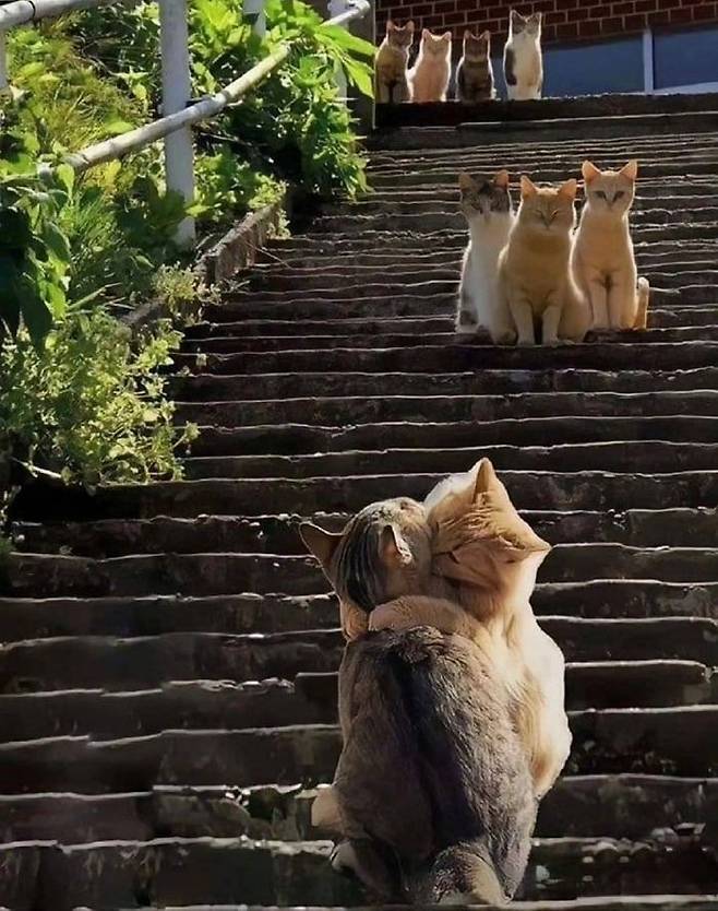 아니 무슨 구경이라도 났는지 온동네 길고양이들이
