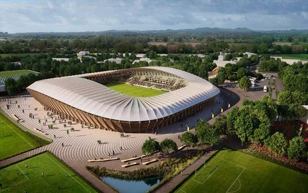 영국의 포레스트 그린 로버스는 세계 최초로 채식주의를 지향하는 축구단이다. 이들의 경기장은 서울 동대문 디자인 플라자의 설계자로 유명한 자하 하디드가 디자인했다. 그는 전기를 태양광 패널로 생산하고, 빗물을 모아서 재활용할 수 있는 경기장을 만들었다. 필드에는 일체의 농약과 제초제가 쓰이지 않은 친환경 잔디가 깔렸으며, 건축 자재 대부분은 나무가 사용됐다. 안전하고 재활용이 가능한 아름다운 경기장을 만들고자 했으며, 또 실제로 이뤄진 건축물이다.