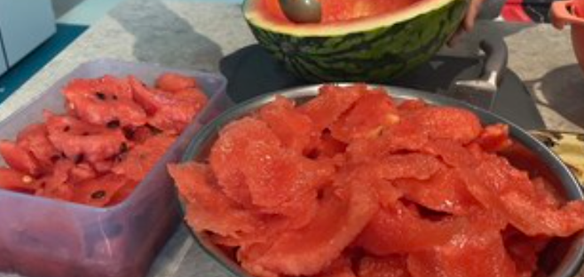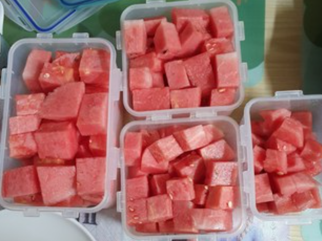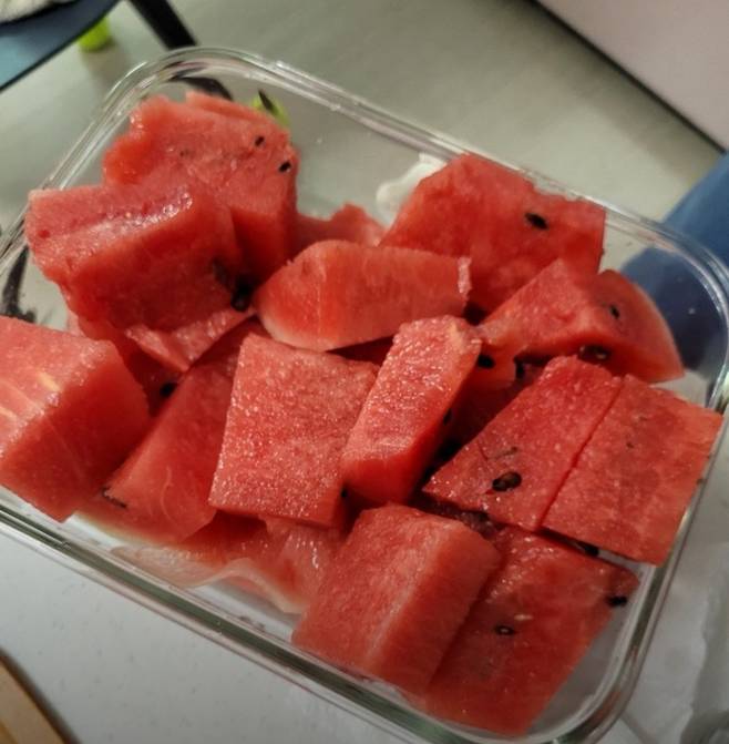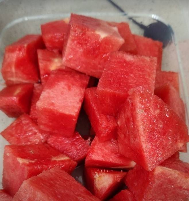 수박을 조각내어 간단히 간식으로 먹으면 더위도 식히고, 수분 보충도 가능합니다.
