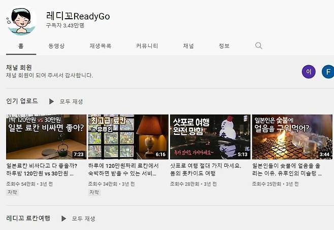 현지 일본 여행사에서 근무하는 일본 여행 유튜버입니다. 대중교통 꿀팁과 일본 관광지 추천 받을 수 있는 유튜브 채널이랍니다. 최근 비자 풀린 후 일본여행에 대한 최신 정보를 얻기 좋은 채널입니다.