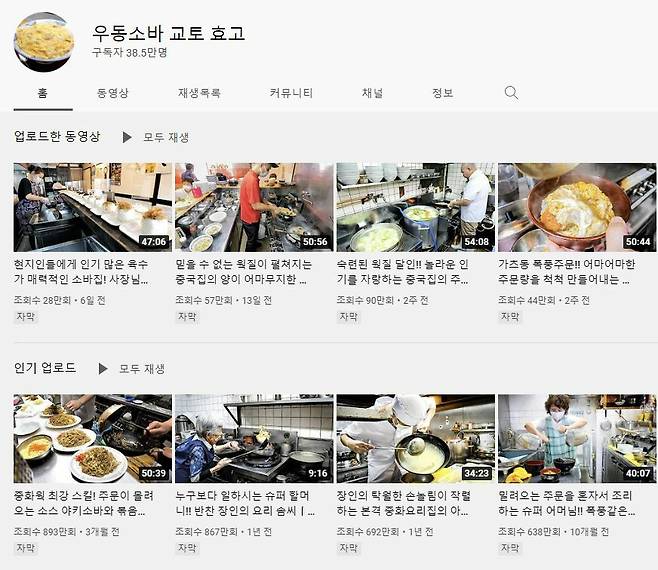 한국인도 일본인도 잘 모르는 현지 로컬 맛집만 소개되는 채널입니다. 채널 이름명답게 대부분 우동, 소바와 같은 메뉴를 만드는 과정이 자세히 나와서 보는 재미가 있습니다.