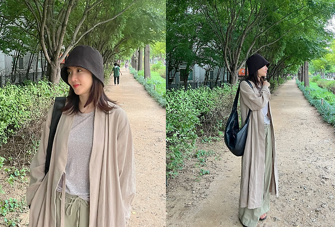 이는 베이지-그레이-카키로 이어지는 '톤온톤' 스타일링으로, 차분하면서도 고급스러운 분위기를 완성하는 '패션 고수'의 스킬이다.