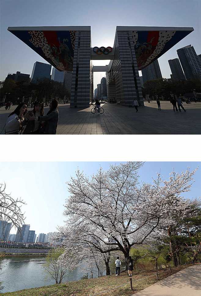 부부동반 모임에서 올림픽 공원 벚꽃놀이를 하기로 했다.