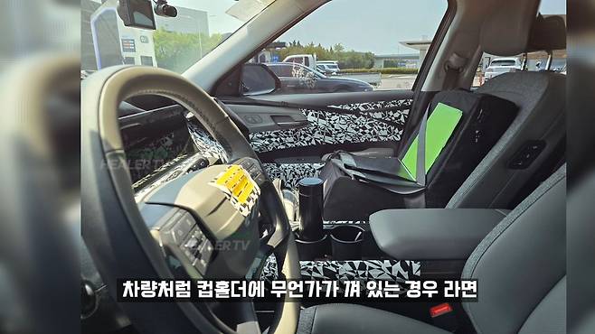 이번에 새롭게 확인된 점은 무선 충전 패드의 위치 변화이다. 이전 영상에서는 컵홀더가 있는 부분에 무선 충전 패드의 위치를 확인할 수 없었지만, 이번 차량에서는 컵홀더가 있는 부분에 무선 충전 패드가 위치하고 있다.