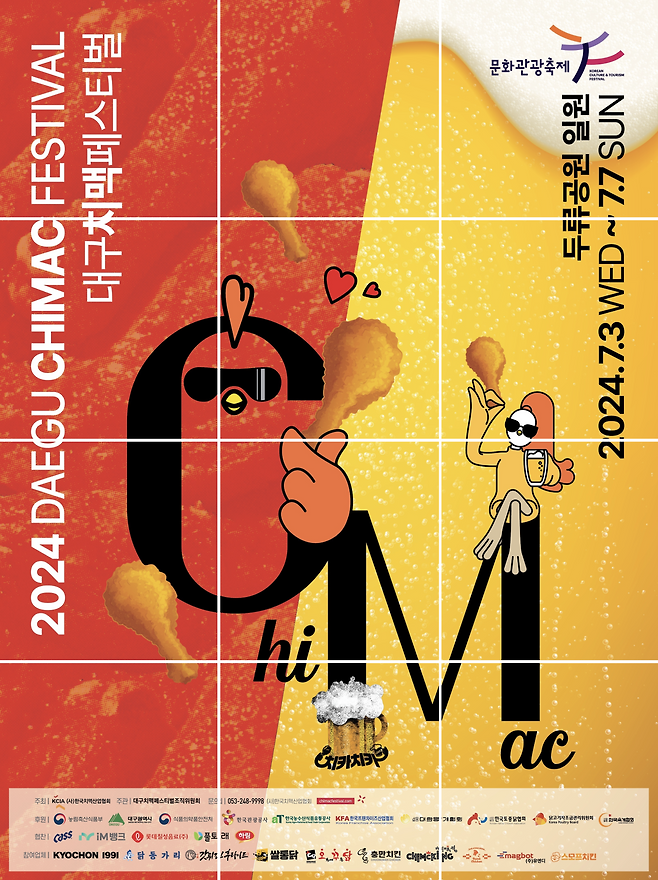 매년 여름 대구에서 열리는 대구치맥페스티벌이 2024년 여름을 맞이하여 7월 3일부터 시작된다고. 기본 입장료는 무료이지만 테이블 제공 및 맥주 6캔 등이 포함된 프리미엄 사전예약은 85,000원에 별도로 예약할 수 있다고 해. 특히나 박명수, 지코, 창모, 데이브레이크 등 다양한 가수들의 공연 또한 관람할 수 있다고 하니 참고하기.