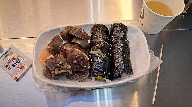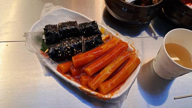 꼬마김밥 2개에 오뎅 하나 먹으면 5,000원 이하로 아침으로 먹기 딱 좋더라고요.