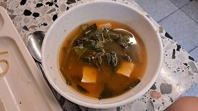흔한 시금치 된장국이지만 민물 새우같은 게 들어가서 약간의 얼큰함에 구수하면서 시원해서 맛있어요.