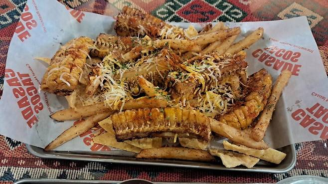 양 불리기로 나쵸랑 감자튀김이 섞여있네요. ㅡ ㅡ
