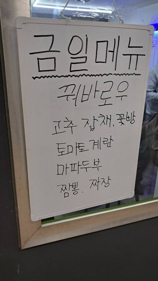 여기는 특이하게 오늘의 메뉴를 담아서 이렇게 입구 쪽에 전시하더라고요.