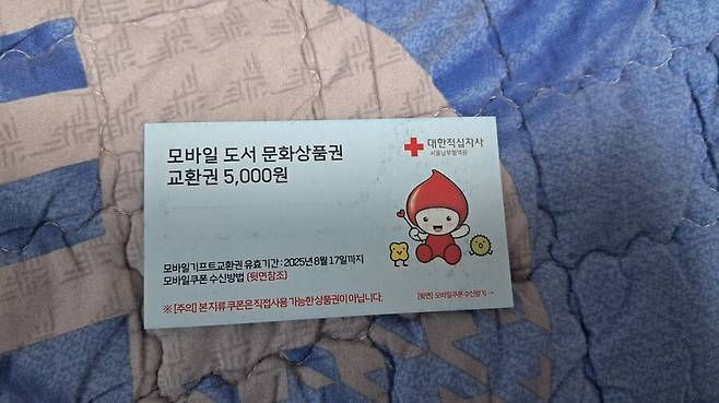 덕분에 헌혈 기념품으로 편의점, 카페 교환권 그리고 가장 좋아하는 모바일 문화상품권 등을 잔뜩 받아서 잘 써먹었고요.
