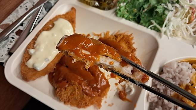 등심 돈까스는 수제라는데 고기가 제법 두께가 있고 소스도 맛있어요.