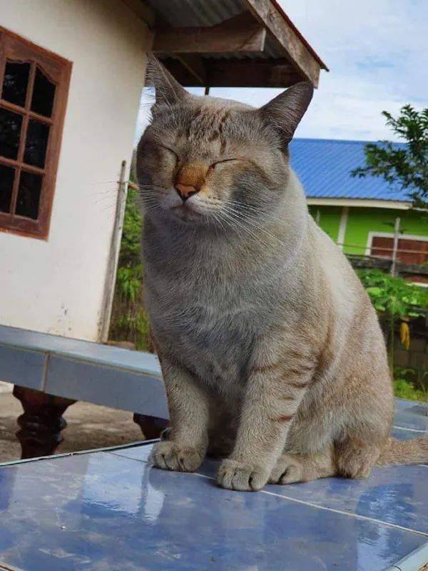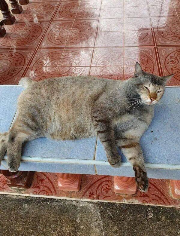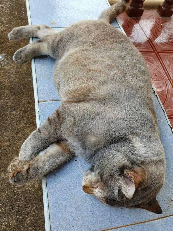 통통해진 모습을 본 주인이 "너 정말 살쪘구나!"라며 장난을 치자, 고양이는 곧바로 시무룩해졌습니다.