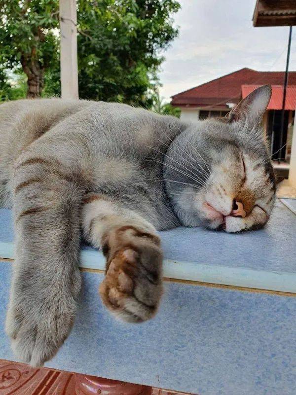 하루 종일 바깥세상을 누비고 돌아온 고양이는 마치 "고생 끝에 행복이 온다"는 듯 털썩 주저앉았습니다.