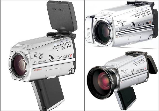 대표적으로 2004년에 출시된 펜탁스의 OPTIO MX4를 보자. 디지털 카메라 같기도 캠코더 같기도 한 특이한 디자인으로 20년 전에도 관심을 끌었다. 헤드업 & 180도 회전 디스플레이가 들어가 다양한 앵글로 촬영할 수 있어 마치 총 쏘는 자세로 찍기도 했다. 요즘 카메라는 디자인이 심심하다고 생각한다면 빈티지 디지털 카메라의 세계로 발을 살짝 담가보자.