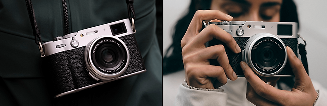빈티지 디지털 카메라의 디자인은 끌리는데 스펙은 포기하고 싶지 않다면 후지필름 파인픽스 X100VI를 추천한다. 겉은 X100 시리즈 특유의 아날로그 디자인을 넣었는데 속은 최첨단 성능을 자랑한다. 블랙과 실버 색상으로 나뉘는데 실버 색상이 알루미늄 플레이트와 가죽 질감의 소재를 적용해 레트로한 느낌이 더 난다.