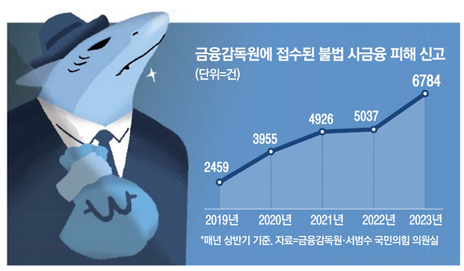 반면 불법사금융업자로부터 서민을 보호하기 위한 다양한 법안들은 국회 정무위원회에 멈춰있다. 서범수 국민의힘 의원실이 금융감독원으로부터 제출받은 자료에 따르면 올 상반기 금감원에 접수된 불법 사금융 상담 및 신고 건수는 6784건으로, 그 규모는 매년 증가세다.