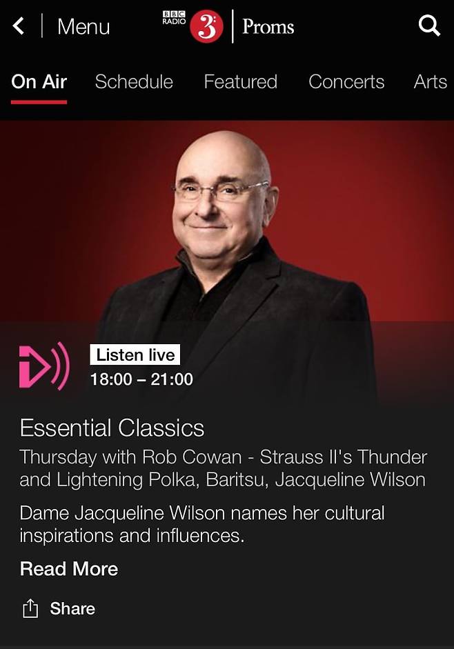 일주일 단위로 프로그램 편성표가 올라오고 방송이 지나가도 일주일은 다시듣기가 가능하므로 언제든 원하는 음악을 찾아 들을 수 있다. 스케줄 페이지에서 특히 주목할 부분은 영국시간으로 매일 저녁 7시 30분(한국은 새벽 4시 30분)부터 9시 30분까지 방송하는 라이브 중계. 매일 저녁 런던에서 열리는 주요 공연을 중계해주는데 주로 BBC 심포니 오케스트라나 필하모니아 관현악단, 런던 심포니 오케스트라, 런던 필하모닉 오케스트라, 로열 필하모닉 오케스트라 같은 전통적인 런던의 빅5로 꼽히는 오케스트라들 외에 근래 각광받고 있는 버밍햄 심포니 오케스트라나 맨체스터 할레 오케스트라의 공연도 꽤 자주 나온다. 그 덕분에 맨체스터 할레 오케스트라의 예술감독 마크 엘더와 협연이 잦은 피아니스트 김선욱의 실황도 종종 들을 수 있었다. BBC 라디오는 영국 내에서는 192Kbps의 고음질로 들을 수 있고 그 외의 지역은 48Kbps로 제한돼 있다.