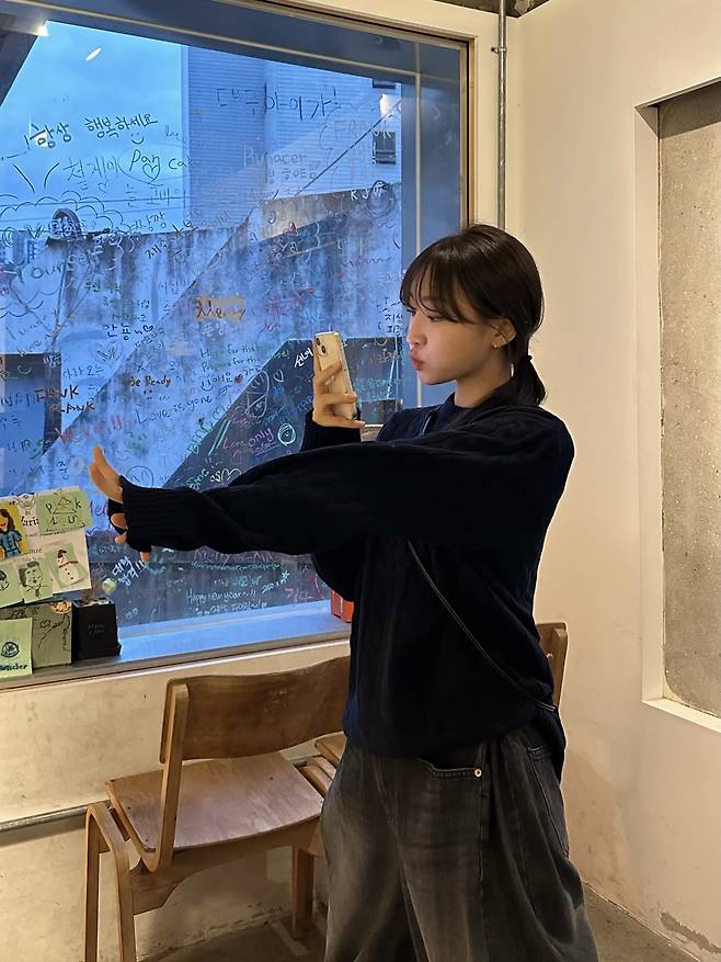 네이비 꽈배기 니트는 청바지에도, 치마에도, 트레이닝복에도