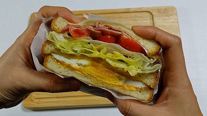 식빵 3장, 버터, 베이컨, 계란, 후추,