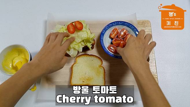 소금, 치즈, 계란, 양상추, 방울토마토,