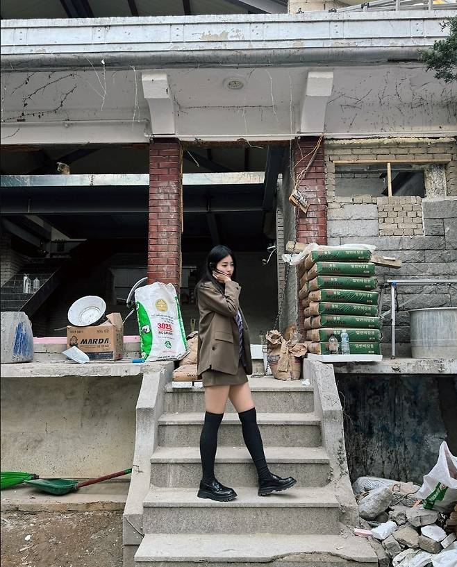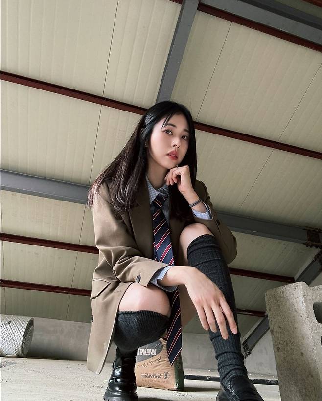 서동주는 교복 스타일의 미니 스커트와 무릎 위로 올라오는 하이삭스를 선택해 전체적으로 클래식하면서도 경쾌한 분위기를 자아냈습니다.