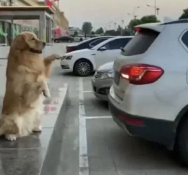 공개된 영상에 따르면 골든 리트리버 강아지가 후진 주차하는 중인 차량 뒤에서 두 발로 일어서 있었습니다.