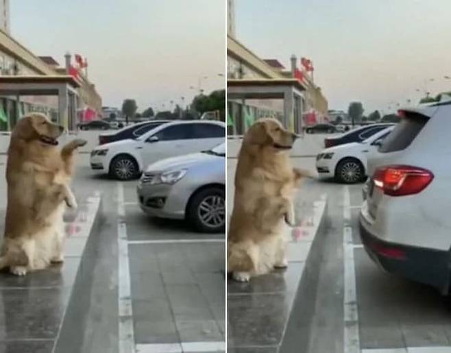 네, 그렇습니다. 골든 리트리버 강아지는 차량이 무사히 주차할 수 있도록 주차 도우미가 되었는데요. 정말 신기한 광경이 아닐 수 없습니다.
