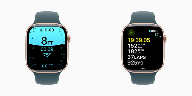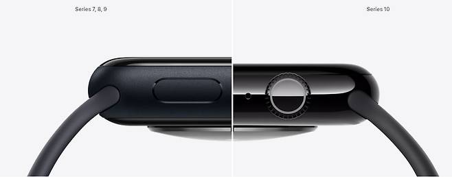 소재 또한 알루미늄 또는 티타늄 중에서 선택이 가능해졌다. 기존 스테인리스 소재 대신 티타늄 소재를 추가하면서 내구성을 높였을 뿐 아니라 무게도 줄었다. 45㎜ 애플 워치 9 스테인리스 스틸 모델의 무게는 51.5g인데 비해, 46㎜ 애플 워치 10 티타늄 모델의 무게는 41.7g에 불과하다. 급속 충전 기능도 개선돼 30분 만에 최대 80%까지 배터리를 충전할 수 있다. 이전 모델의 경우 배터리를 80%까지 충전하려면 45분이 소요됐다.