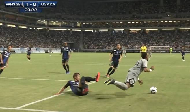 전반 30분 파리가 1-0으로 앞서나가고 있는 상황에서 네이마르는 감바 오사카의 박스 안으로 진입했다.