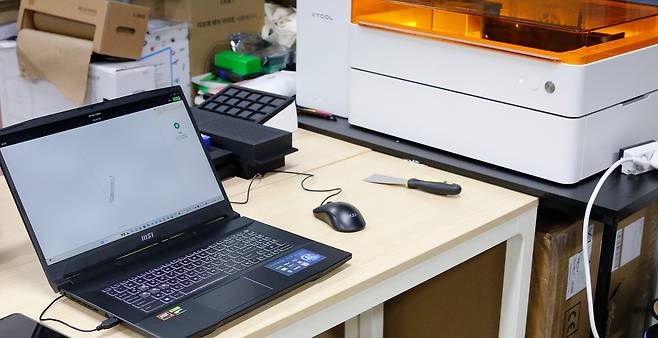 외부에서 디자인 작업이나 외주 작업 미팅할때도 주로 사용했으며, 사무실에서는 공작기기 구동이라든지 오늘 소개하는 레이저조각기 같은 기기 작업할때도 사용을 했습니다.