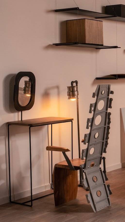 덕분에 공개된 가구의 이미지들은 굉장히 참신한 모습인데요. 비행기 부품으로 쓰이던 본래 모습이 드러나 더욱 매력적인 디자인입니다. 조금 더 감상해 볼까요?