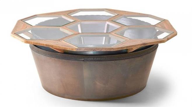 # A380 제트 엔진에 티타늄, 연모 나무, 유리와 결합해 만든 테이블