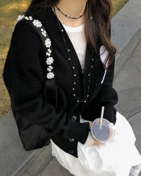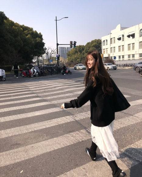 이 덕분에 그냥 앉아 있는 것만으로도 감성 넘치는 한 컷이 완성된 듯한 기분이에요. 이 가디건, 그냥 평범한 블랙 가디건 같지만 사실 한국에서만 만나볼 수 있는 독점 아이템이라는 사실!