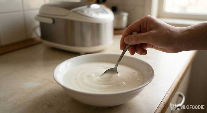 이 과정에서 우유 선택이 중요하다. 너무 가공된 저지방 우유보다는 원유에 가까운 제품을 쓰는 게 훨씬 부드럽고 고소한 결과를 만든다. 지방이 적으면 완성된 요거트가 묽어질 수 있다.