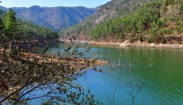 저수지 주변으로 산책로가 잘 조성되어 있어 여유롭게 걸으며 겨울 풍경을 감상하기 좋아요. 맑은 날에는 저수지에 비친 하늘과 주변 산들의 모습이 그림 같은 풍경을 만들어내죠.