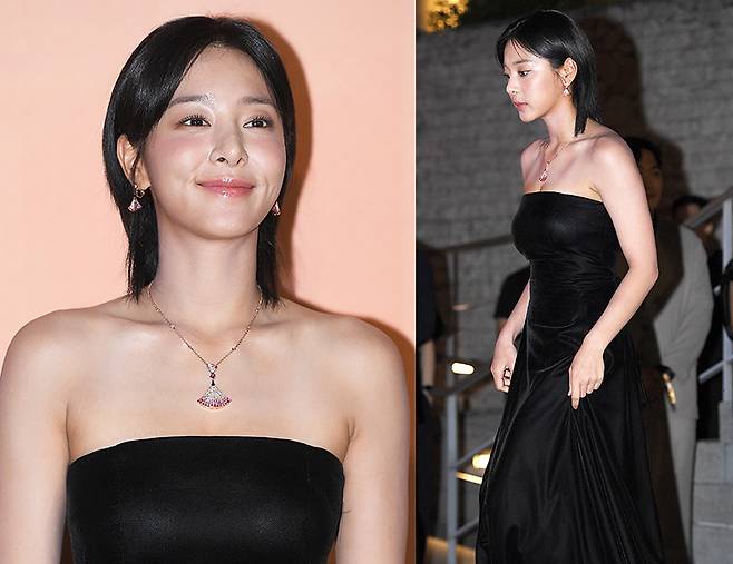 설인아는 블랙 튜브탑 드레스를 착용해 우아하고 기품 있는 자태를 뽐냈습니다.